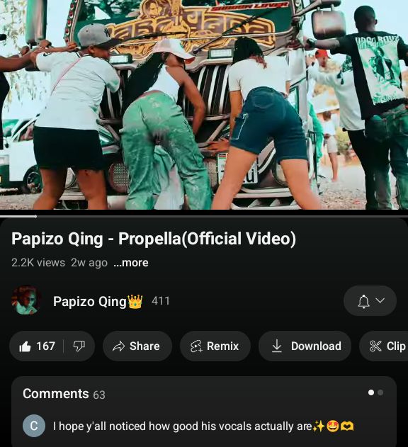 Countless Kenyans who interacted with Propella music video on YouTube camped in the comments section to laud Papizo Qing for his prowess and most importantly, refreshing their memories.